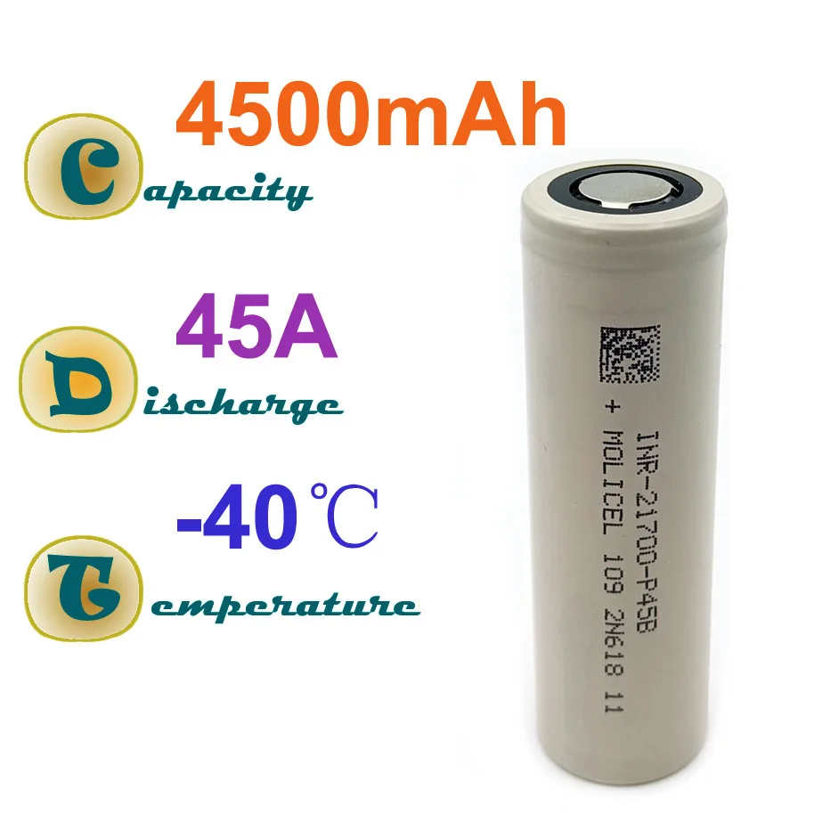 Original Molicel Inr21700 P45b 3.7V 4500mAh Rechargeable Li-ion Battery Batteries Cell